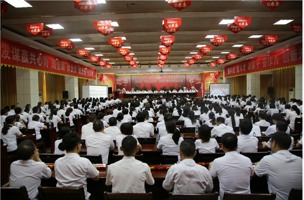 2018年9月1日,仁和集團隆重召開2018年“同心大會戰(zhàn)”營銷大賽全國電視電話會議。樟樹市委副書記尹志來、副市長晏衛(wèi)華蒞臨會議,楊文龍董事長和集團董事會成員出席會議,公司5000多名各級員工在樟樹主會場和全國25個省會城市分會場參加了會議。