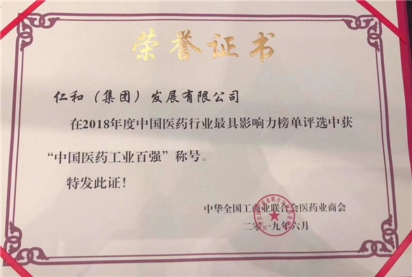 仁和集團(tuán)榮膺2018年度中國醫(yī)藥工業(yè)百強等多個獎項